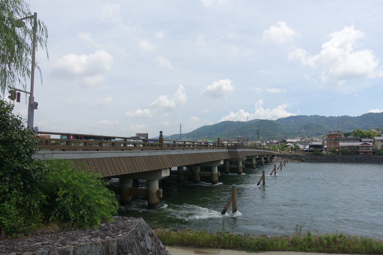 京阪宇治駅の目の前にある宇治橋にかかる大きな橋が宇治橋です。京阪宇治駅から平等院に行くときに渡りました。周辺の景色に溶け込むように、橋全体が薄い茶色で装飾されていました。宇治橋からは、上流の方にある宇治上神社近くの橋などの眺めがきれいです。
