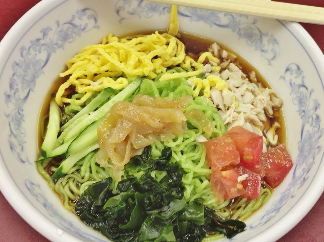 今回は冷し中華(¥590)、醤油ダレと胡麻ダレがあるので醤油ダレを注文しました。