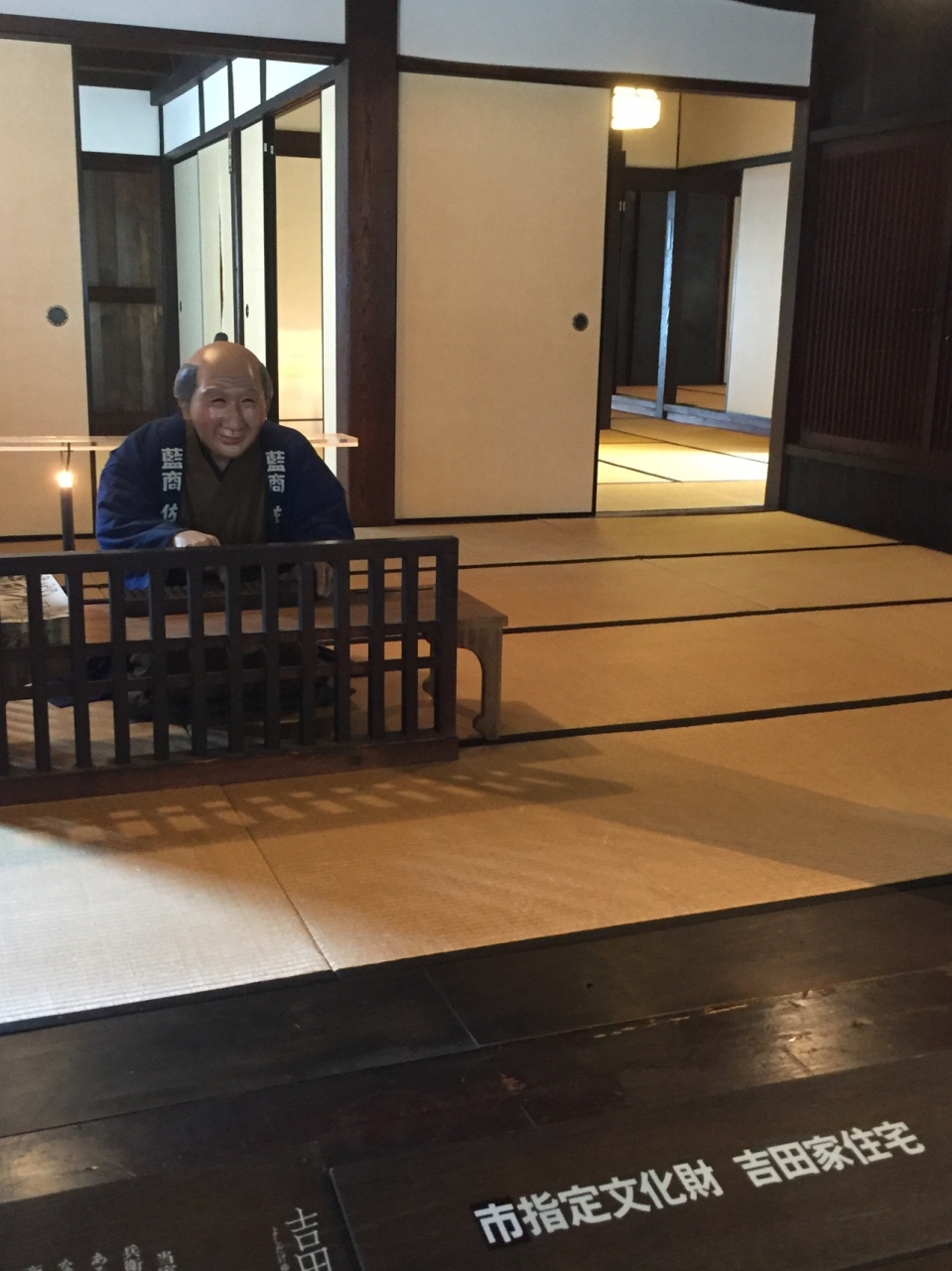 道の駅藍ランドうだつから町並み方面にでて左に歩くと最初にあるのが、脇町の有形文化財でもある吉田家住宅です。藍商として成功したそうで、街で一番の敷地の大きさだったそうです。佐直は屋号です。売店がある土間までは無料で入れます。