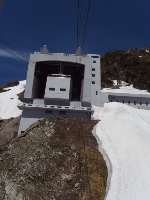 立山黒部アルペンルートの黒部平と大観峰の間、1.7km、標高差488mを7分間で結ぶロープウェイです。このロープウェイは駅と駅の間に柱がありません、ワイアーだけでが渡されていてそこを動いていきます。西側は、山の斜面しか見えませんが、ニホンカモシカがいるのが見えました。東側は北アルプスに連なる山々と眼下に紺碧の黒部湖が見えます。アルペンルートはいつも混んでいるので、好きな景色を自由にみられるわけではありませんが、どこにいてもそれなりの絶景が楽しめます。
