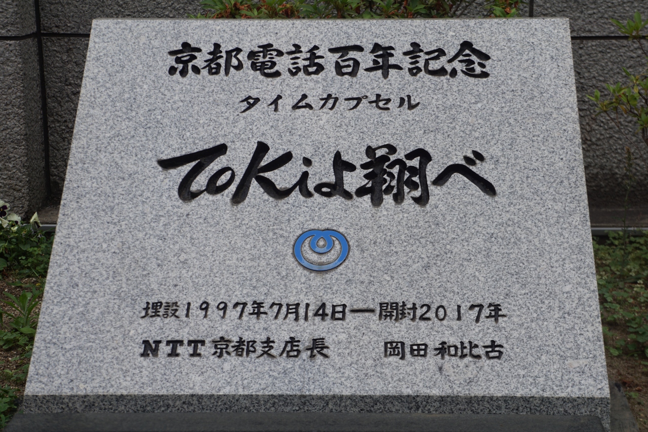 詳しい意味は分かりませんが、京都電話百年を記念してタイムカプセルが埋められたよう。この碑はそのタイムカプセルが埋められたことを示すものでもあるようです。
