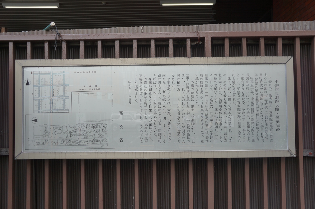 平安京東洞院大路跡は、中京局建物の北西側。ちょっと分かりにくい場所にプレートがありました。