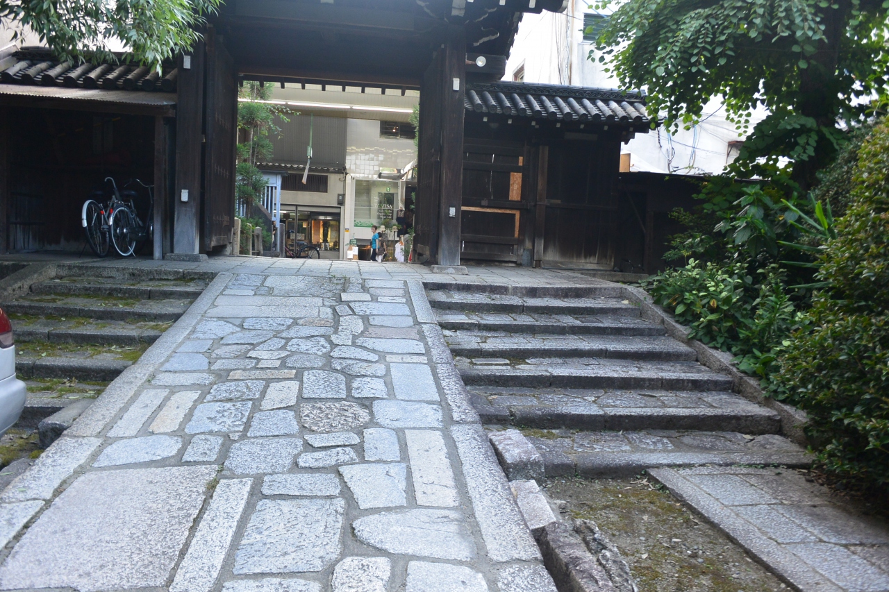 寺町通りの三条上がったところにあります。商店街から少し引っ込んだところに門があり、門をくぐると坂道を下って境内に至ります。自由に参拝できますが、周りは商店街の建物の裏側が見えて、町中のお寺だなあと実感しました。