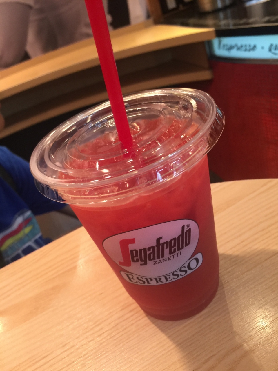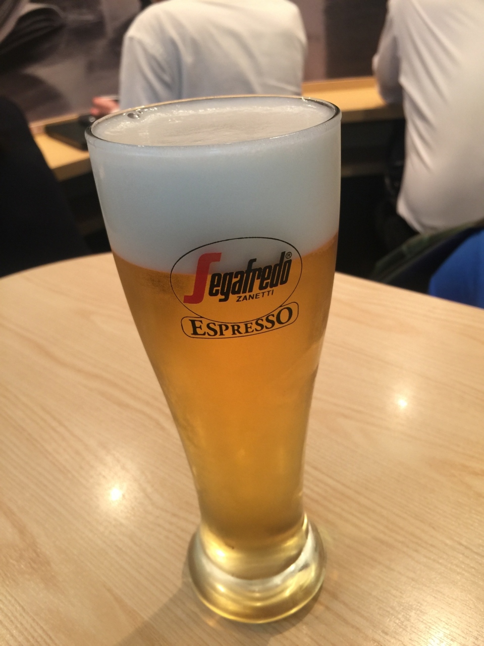私は生ビールのグランデ520円、息子はブラッドオレンジジュースMの480円。ちょっとのんびり、2人で1,000円の休憩(^ ^)