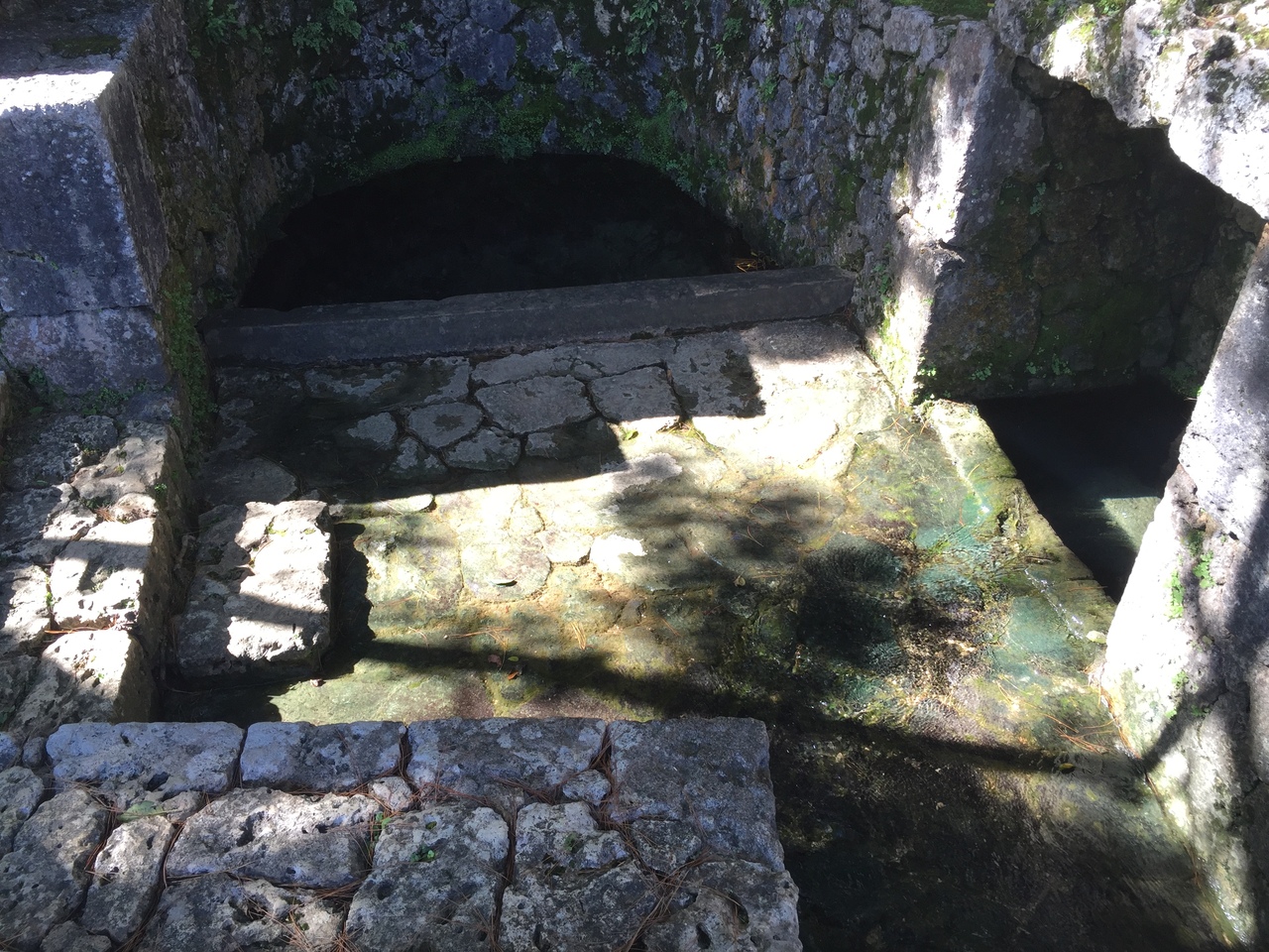 琉球王家の別邸。なんつうことはみんな書いてるので今更書くまでもないであろう。注目したいのは、首里城でもここでも、偉い人のある場所には、必ず湧き水があるのじゃ。それも複数。ここにもひとつ素敵な石垣で囲われた、育徳泉というのがある。それをのぞいてみると。赤い腹のイモリがいるのじや。10年前にもいたから、ダレかわるさをしてもって行ったりしないと思っているのじゃが、ネットで呟いてどうなのだろうか。