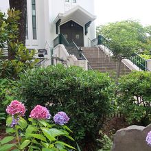 昭和8年に作られた鉄筋コンクリート造の教会は改修されたばかりで古さを全く感じません。まあ周囲に植えられた花々に囲まれとても綺麗でした。