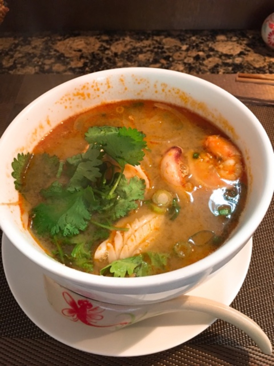 ランチタイムにお邪魔しました。ベトナムナムフォーランチ税込980円。まずサラダ。海老せん美味い。ベトナム料理ですが、トムヤムクン風な味付けの海鮮スパイシー。具は海老といか、もやしに玉ねぎとヘルシーでした。美味しいスープで全部飲みました。
