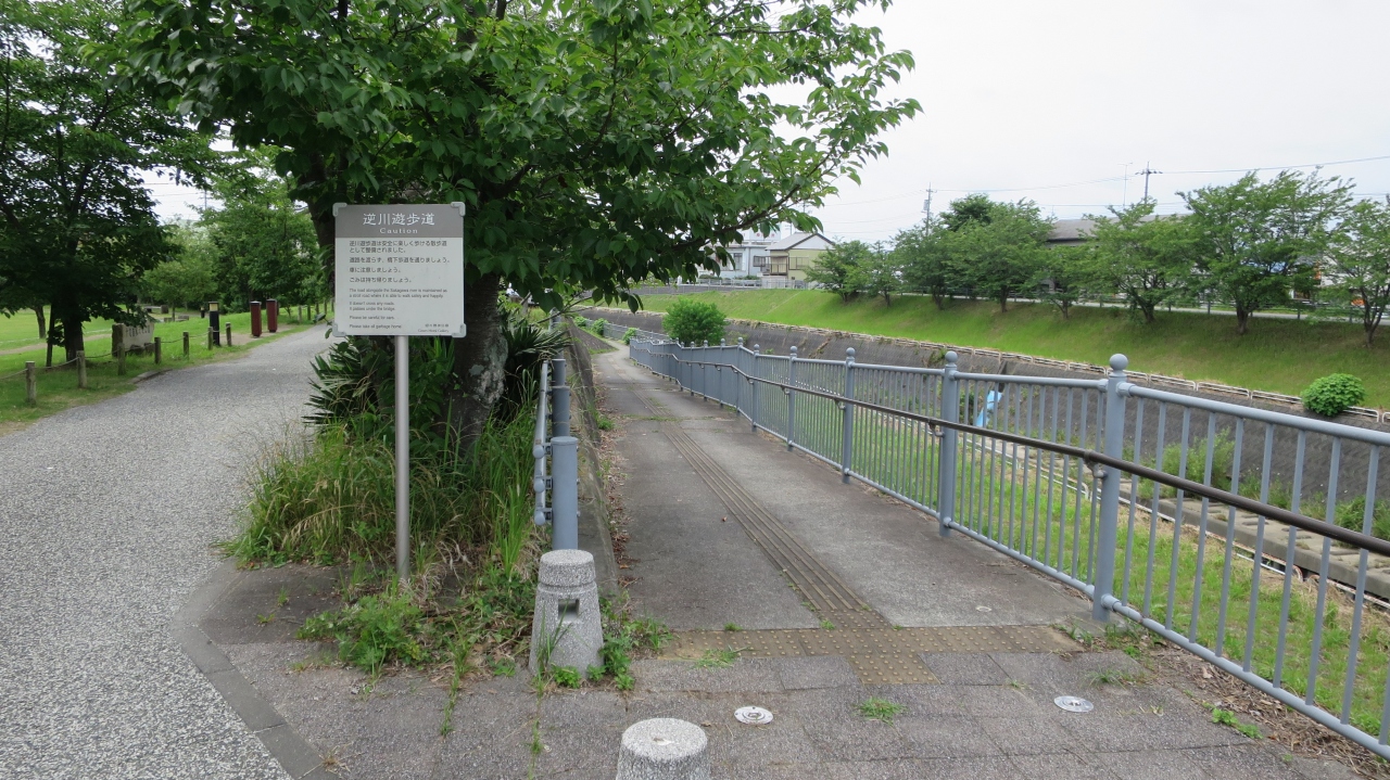 掛川市逆川の川のほとりのある散策路です。夏場なので川沿いの散策路は、雑草が目立ち、ちょっと荒れ果てているような感じがしました。暑さゆえに散策する人もほとんどいませんでした。残念!