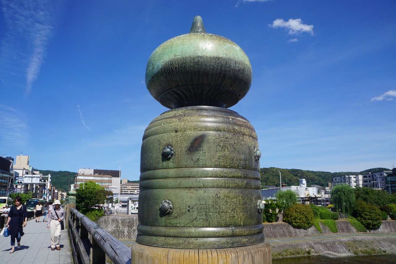 三条大橋には一見してすぐにそれと分かるくらいの刀傷跡のある擬宝珠があります。