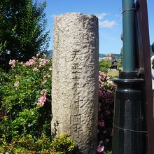 旧三条大橋の石柱は、現在のの三条大橋の西側たもと。今の感覚で言うと大きいようなそうでもないような。中途半端な大きさです。