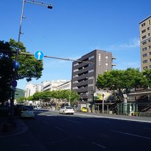 御池通りは東西線も走る大通り。車線も広いし、歩道の部分も広い。たぶん、東西に走る道としては京都では一番広いかもしれません。ゆったりとした通りの両側には近代的なビル。ところどころに地下鉄駅の入口があって、都会的な眺め。京都にもこんな場所があったんだと、その雰囲気を味わってもらえればと思います。