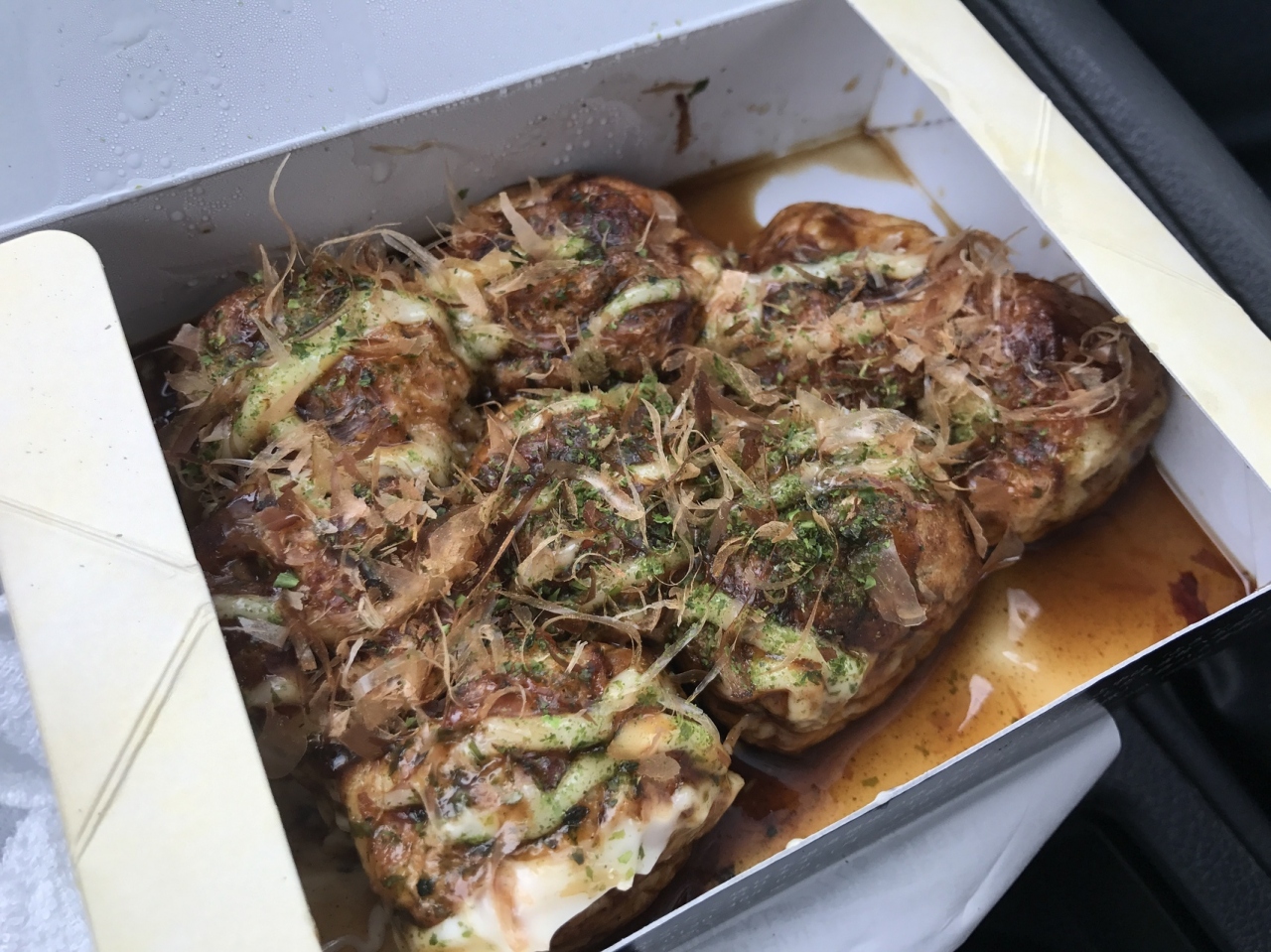 新大阪駅で買ってぐちゃぐちゃになったたこ焼き「くくる」のお店があり、