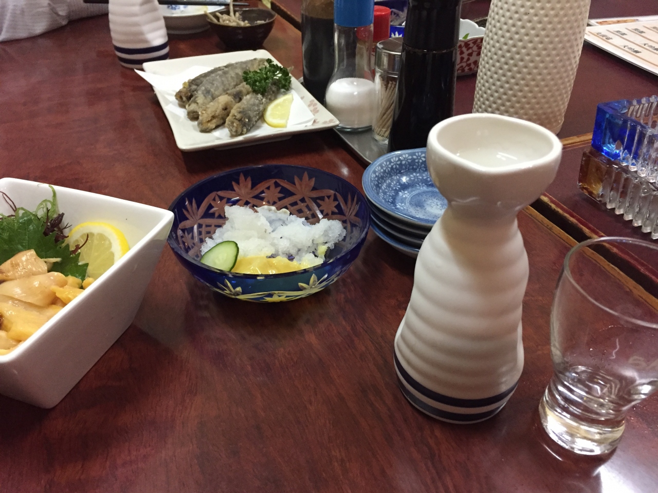 私は聞いたこともない種類の肴がたくさんありました。お値段も安いし、もちろんどれも新鮮で美味!自然とお酒が進んでしまいますね。料理名は忘れてしまったので写真から判断してくださいませ。