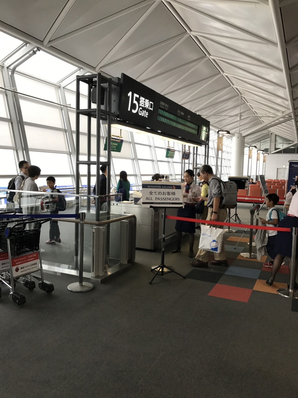 今回はSQ671便でシンガポールへ。搭乗ゲート15は出国ゲートを出て右手に進み突き当たりにあります。セントレアはそこまで広くないのでボーディング時間ギリギリまでラウンジにいてそこからダッシュで行けば間に合います。