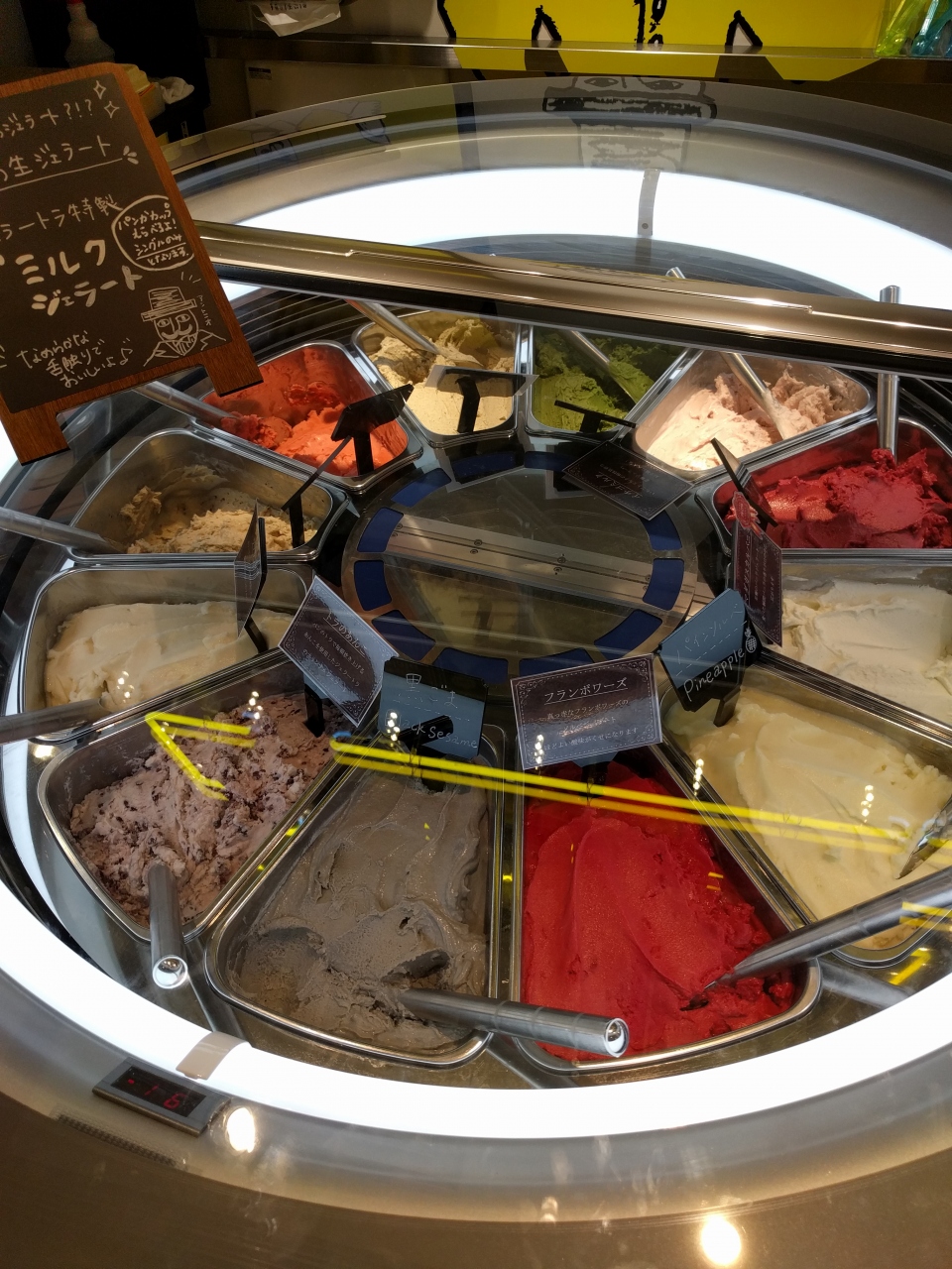 「ジェラートラ セントレア店」に行った。濃い抹茶スムージーが飲みたくて行ったら、ジェラートの店になってた。回転するジェラート、色がいろいろ。西尾の抹茶がうまかった。値段がちょい高かった。安城店があり今度ドライブがてら行こうかな。