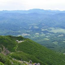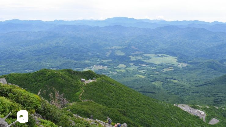 青森県の最高峰である日本百名山。シャトルバスで8合目まで、リフトに乗り継ぎ9合目から登山を開始できる。ここから山頂までは標準30分。手軽ではあるが最後の1合は岩場のきつい登りが続くので油断ならない。ただ、この時点ですでに眺望はよく麓の景色はもちろん津軽海峡や白神山地まで幅広い眺望が得られた。