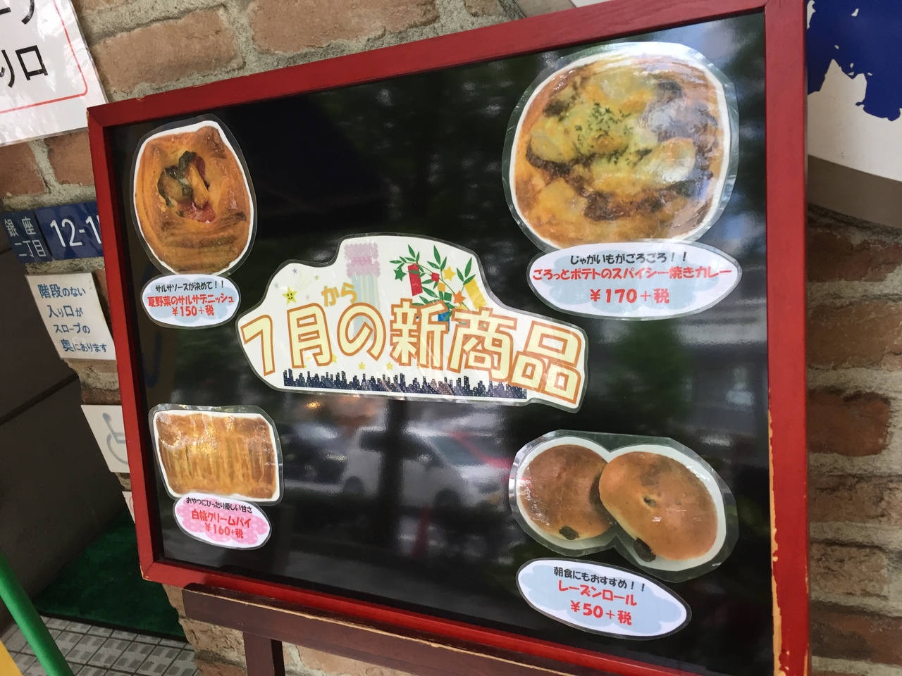 銀座から少し離れて昭和通り渡ったところにあります。銀座価格よりかなりお安いです。でもメチャクチャ美味しいです。季節のパンもありいつ行っても違う味も、定番の味も楽しめます。お隣にはカフェもありますが、ベーカリーの方でも100円でコーヒーがいただけるみたいです。リピーターになりますよきっと。
