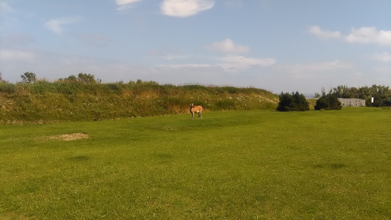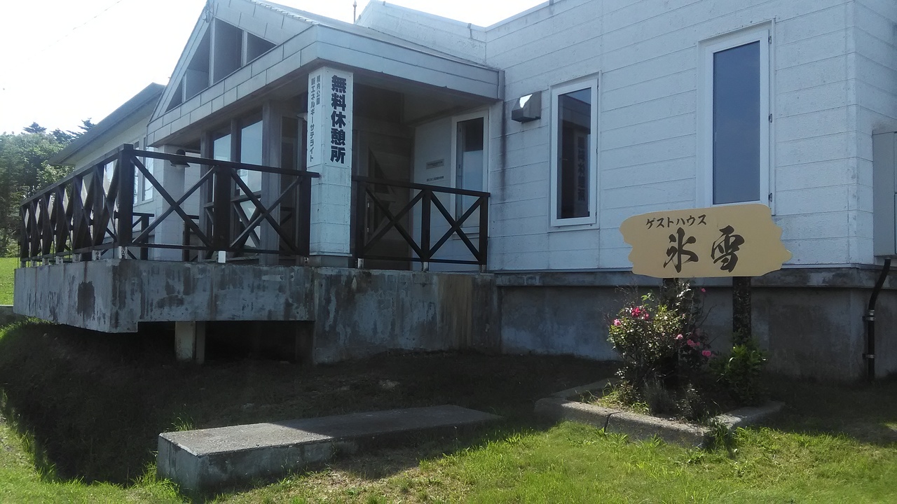 またゲストハウスの前の広場ではまだ子供のエゾシカがのんびり草を食べていました。