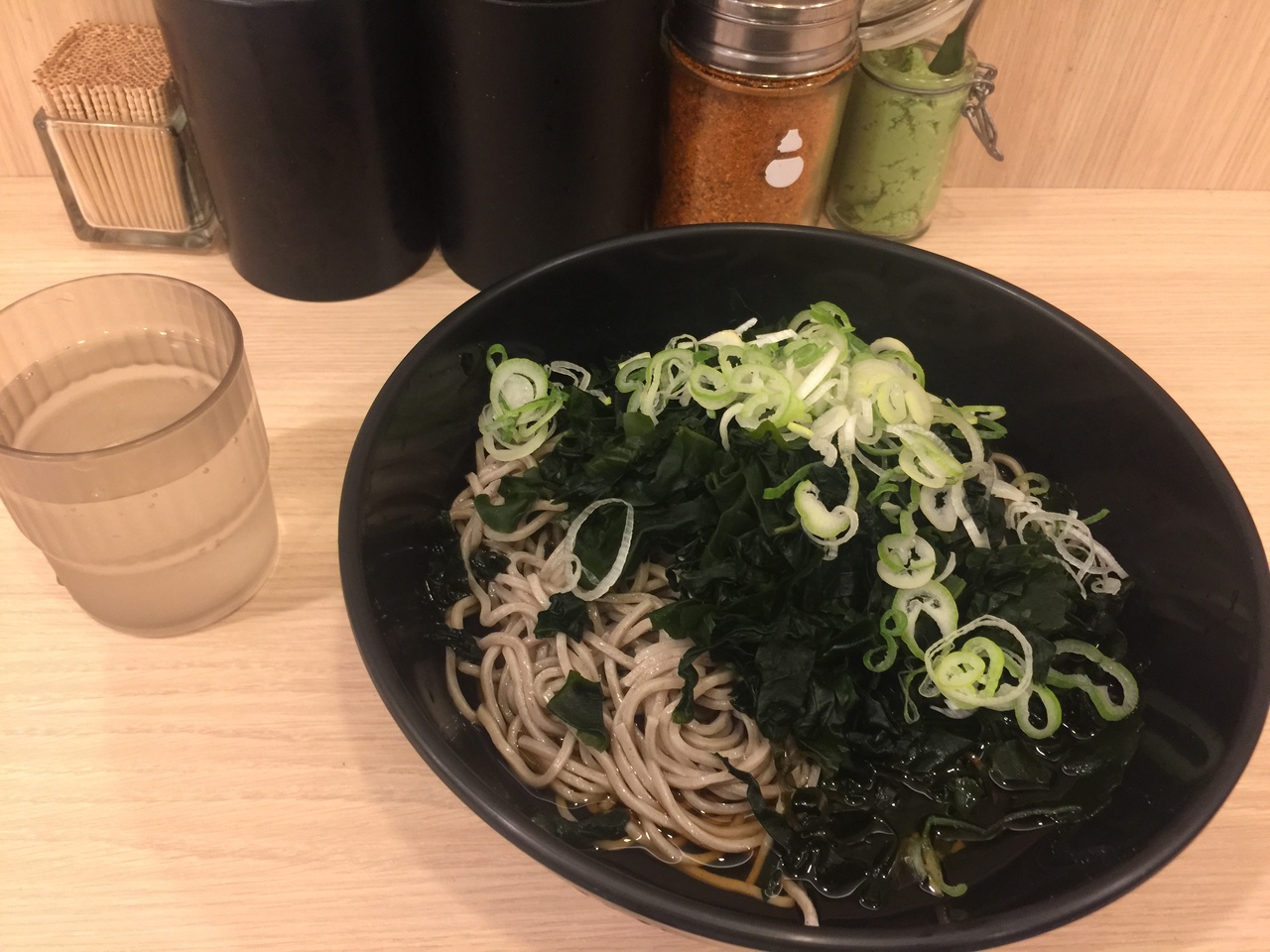 たのんだのはさっぱりと冷やしわかめ蕎麦420円!わかめがどっさり!ちょっとしょっぱいかな、、、