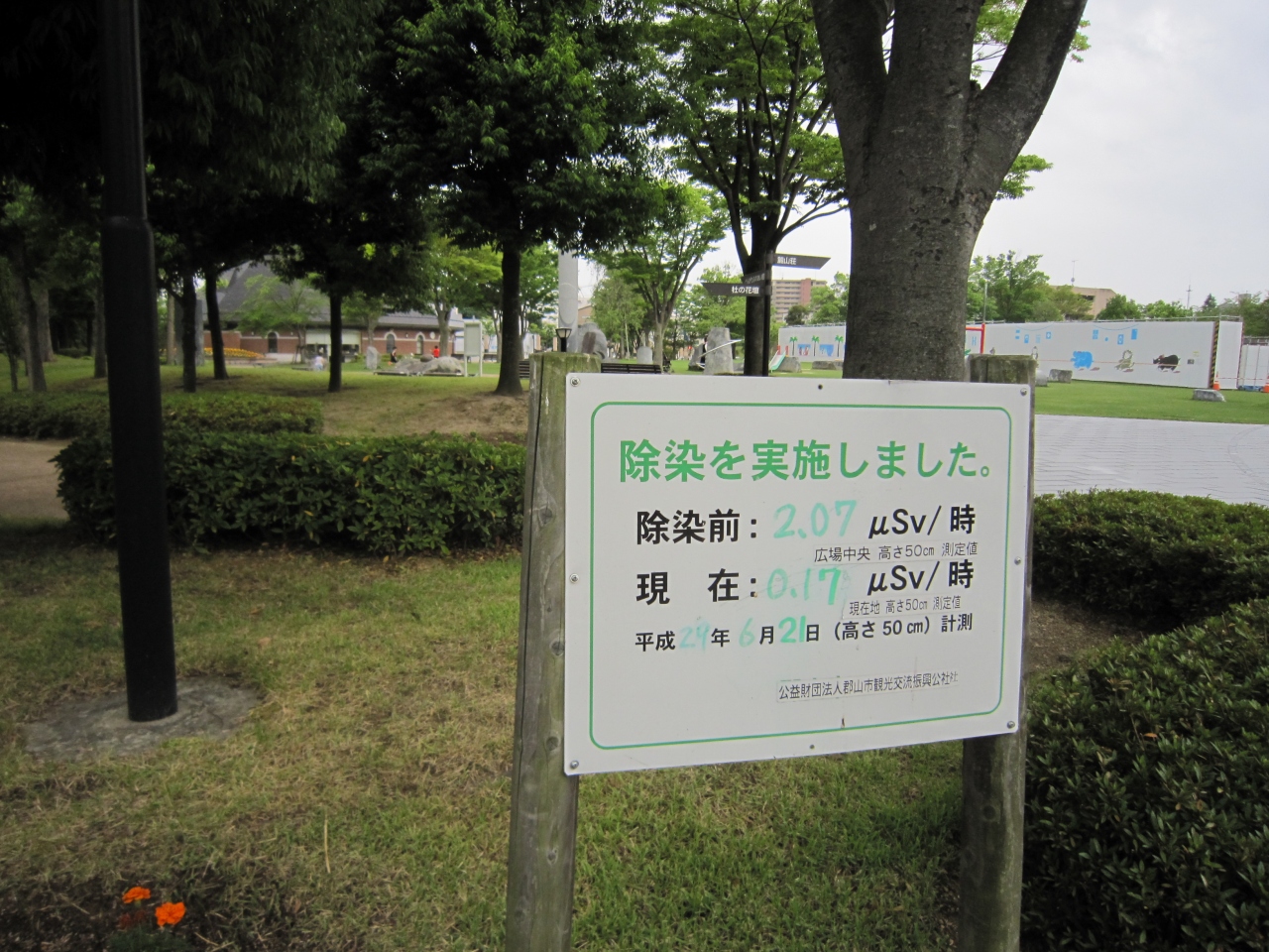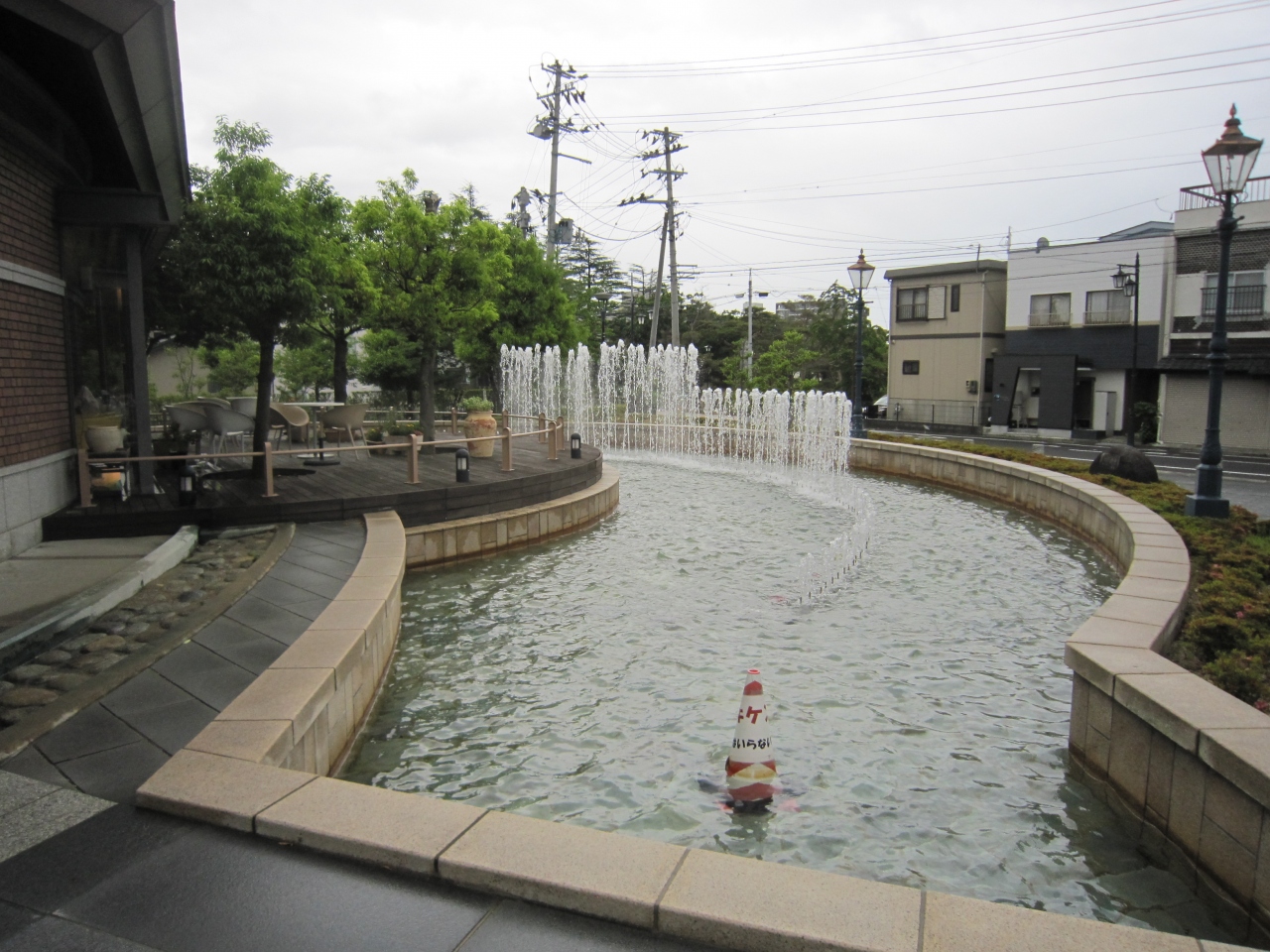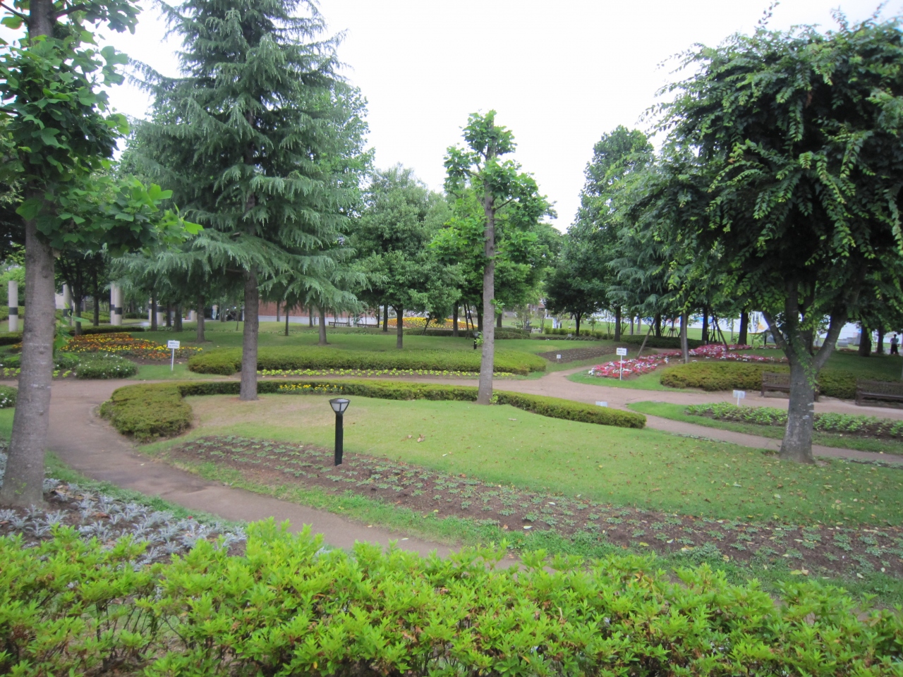 麓山公園の右側です。豊かな花・緑・水をテーマとした文化と交流拠点、地域の防災公園として役割を果たしているようです。雨が降って来たので、とんがりふれあい館に入りました。館内には体験学習室やカフェ等があり、利用している人がいました。館の回りは池で、喫茶店側は噴水になっており交互に噴出していました。麓山荘は茶道・華道など日本古来の伝統を継承する場・抹茶があるそうでが、雨のため行けず日本庭園を見ただけでとんがりふれあい館に入りました。また、四季、杜の花壇がありましたが一部しか花が咲いていませんでした。花が少ない時期だったのでしょう。子供の遊び場もあり雨の中ブランコ等に乗り元気に遊んでいました。除染地の測定は今も続いており測定の表示板がありました。新しい公園のようですが、晴れていれば気持ち良くくつろげる公園のようです。