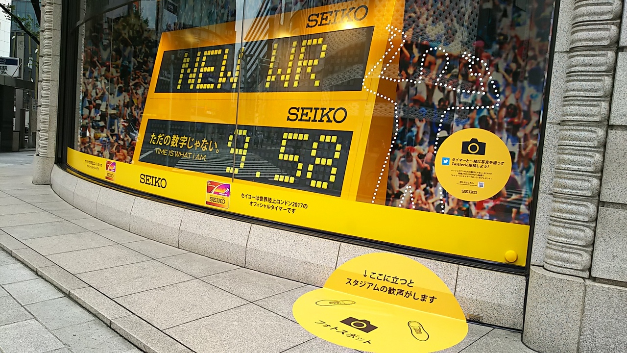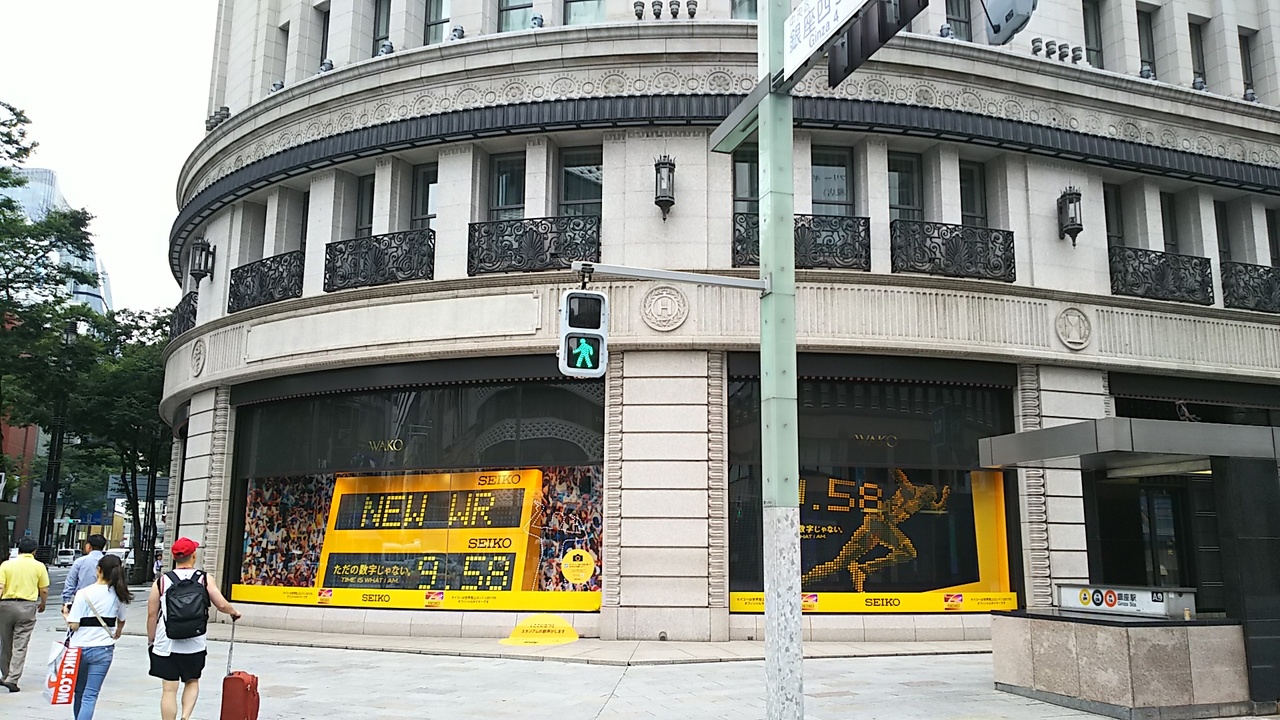 ソニービルの建て替えに伴い例年開催されていたアクアリウムの場所が有楽町駅前の広場に変わっています。また、WAKOのショーウインドウは東京マラソン?と見間違えるSEIKOの黄色がドーンとロンドン世界陸上の応援バージョンになっています。宝くじチャンスセンター1番窓口ではサマージャンボを求める人が列をなすのはかわりませんけど。