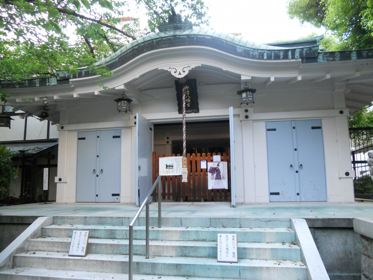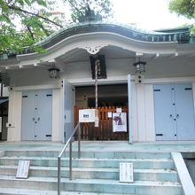 「御津宮(御津八幡宮)」は、アメリカ村の近くにある神社ですが、まずびっくりしたのが、真っ白の壁に淡いブルーの可愛らしい外観です☆