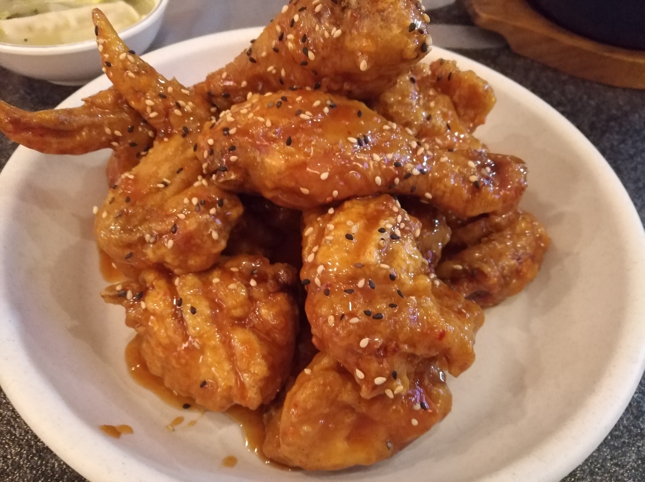 ヤンニョムチキンを頂きました。甘辛いタレがやめられない止まらない!ハーフサイズでも1羽分なので結構な量ですが、最後まで美味しく食べれました。他の味のチキンも食べてみたいので、今度は3人~4人程度で行きたいと思います。大満足です!