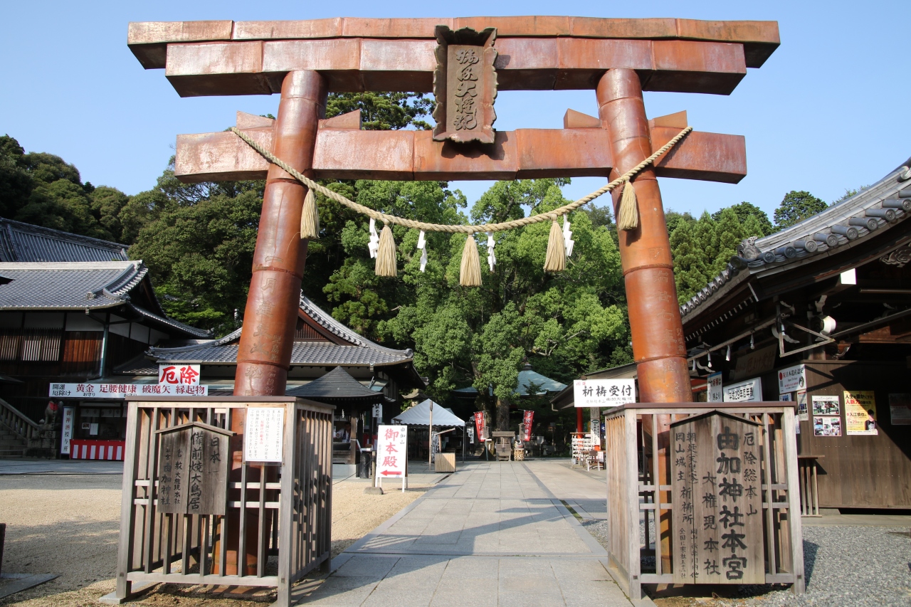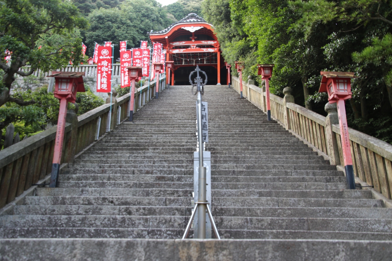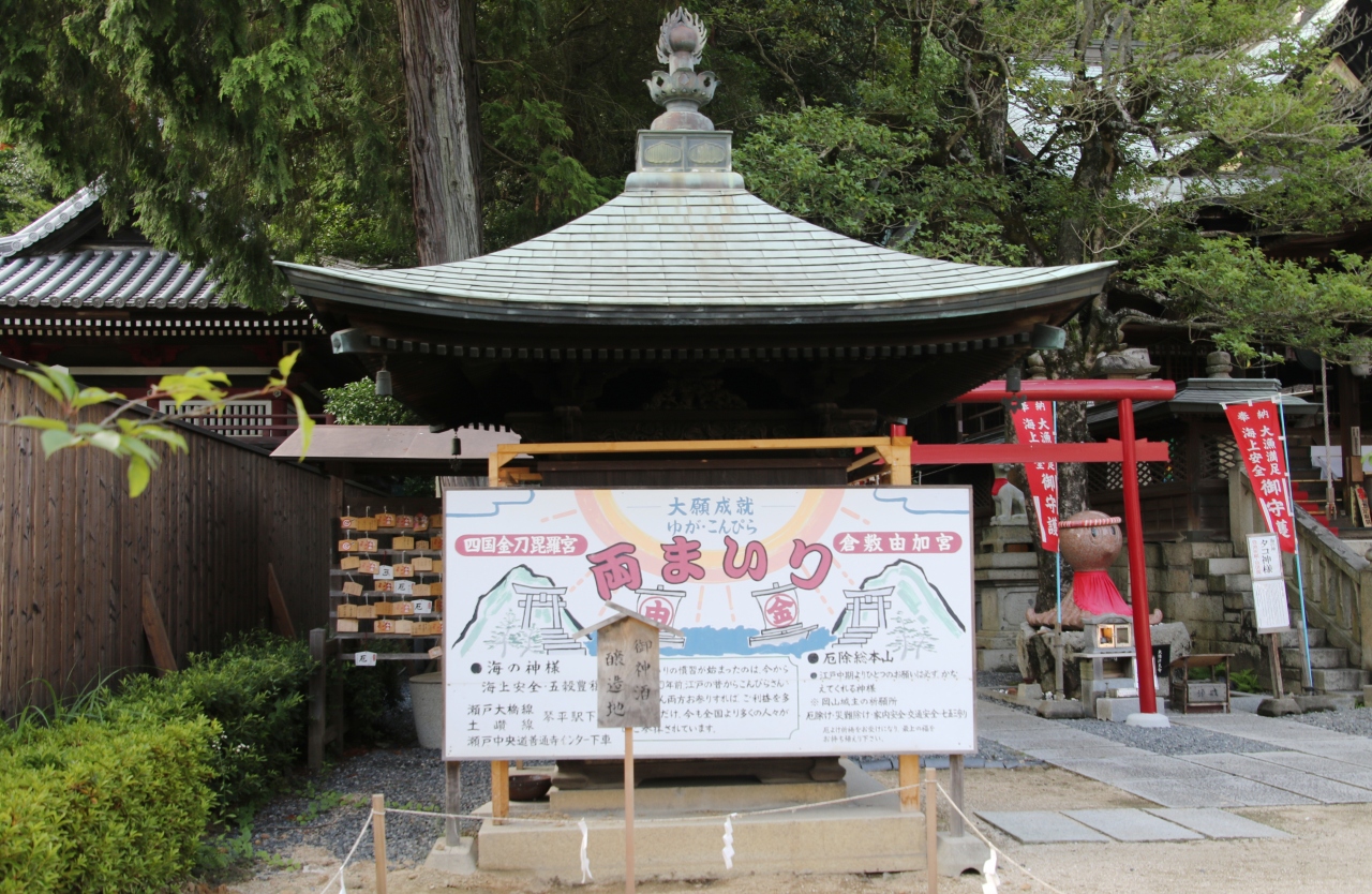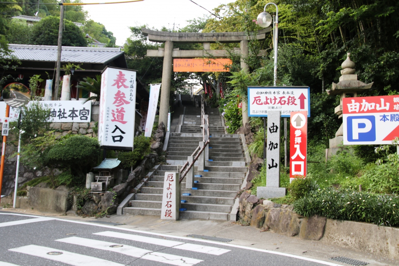 江戸時代までは神仏混淆で由加山蓮台寺と由加神社本宮は同じお宮だったのですが明治の神仏分離令でお寺と神社に別れました。なので何処から何処までが神社でお寺なのか良くわからない構造になっています。本宮神社の奥に六角堂や多宝塔があります。本宮参道入口横に駐車場があります。ここに駐車すると長い石段参道を登って行くことになります。由加山蓮台寺駐車場とい矢印がありそのまま道を進んでに登れば蓮台寺専用の駐車場があり本堂に近道です。足腰の弱った高齢者の方はこちらの駐車場がお勧めです。現在お寺と神社は仲違いしているようです。なので蓮台寺駐車場に車を駐車した時は必ず蓮台寺にお参りしてから神社本宮に参拝してください。間違っても蓮台寺を素通りして神社本宮に参拝しないで下さい。