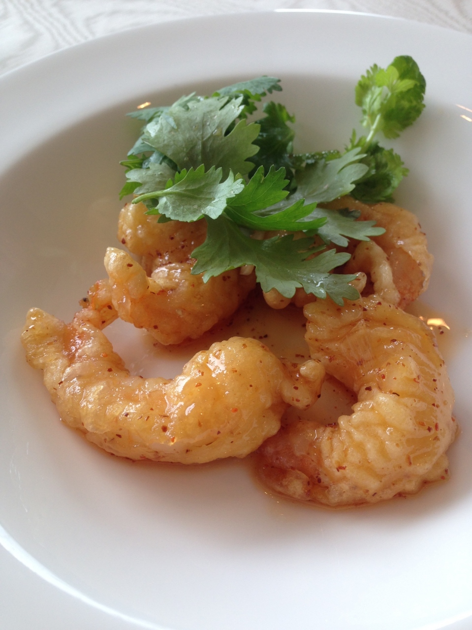 浜松町の貿易センタービルの上にあるので眺めが良く、窓際の席に案内されました。コースのお料理は少しずつ色々なものをいただけるので丁度良かったです。どれもとても美味しく、特に小エビの衣揚げ甘辛ソースとマンゴープリンが最高に美味しかったです。