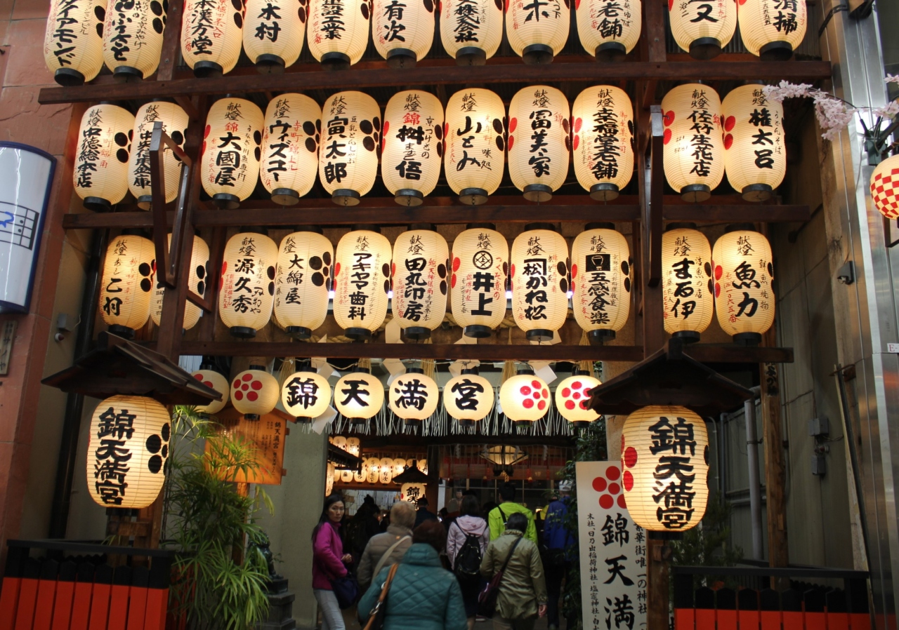 ご祭神は菅原道真を祀っていて、ご利益は学業、厄除け、商売繁盛などですが、錦市場が近いためか提灯は商売繁盛ばかりでした。