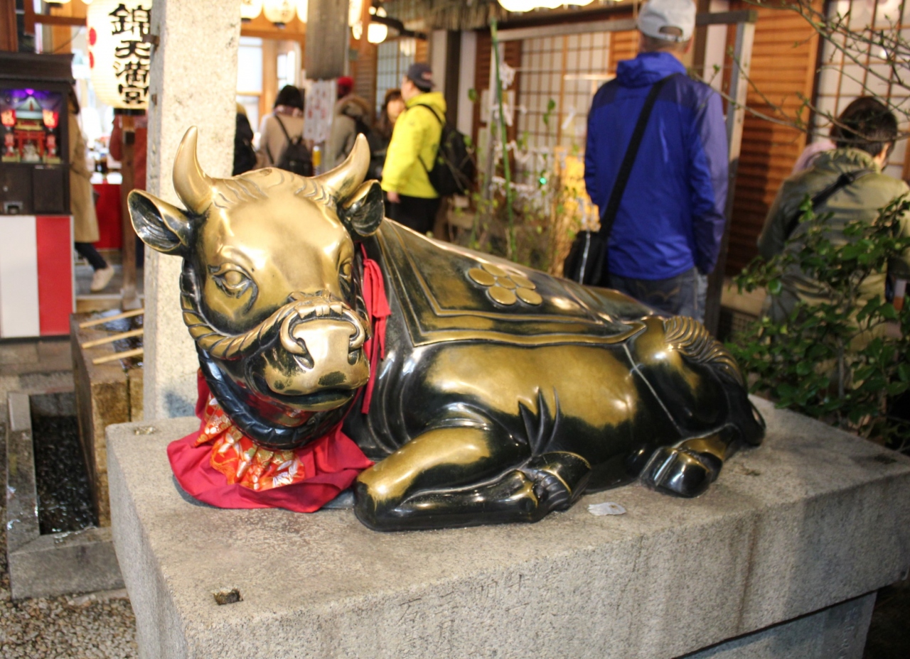 夜、新京極通りを歩いていると錦天満宮があり、夜でも参拝客で賑っていました。