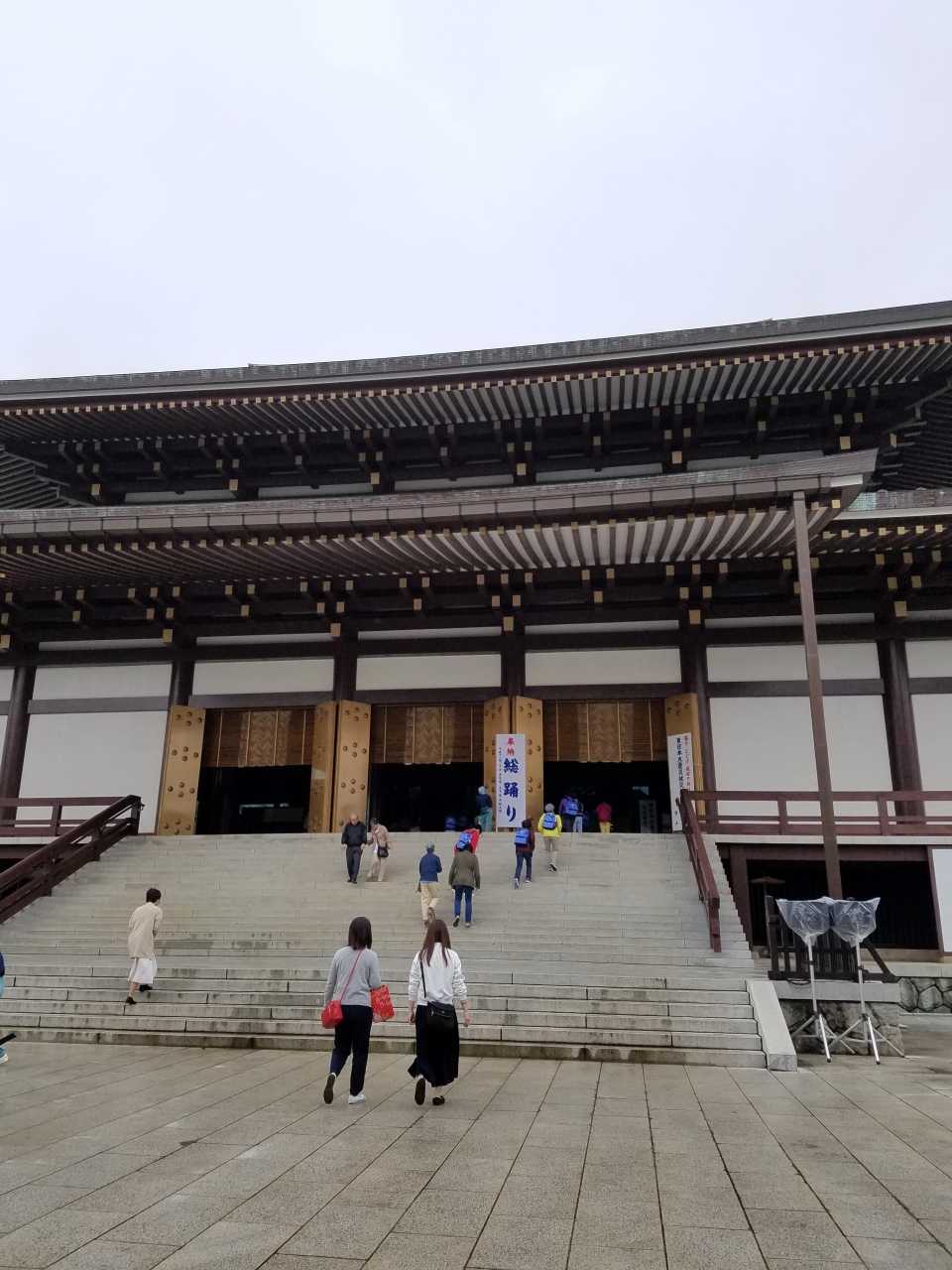 大本堂は、総門から入り仁王門の急な階段を上り終えた正面に現れる建立して約50年のコンクリート製の大きなお堂で、中には本尊不動明王像が安置されています。初詣や節分のときには大変な人がここに訪れるほか、1年を通して護摩祈祷の人が絶えません。
