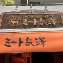 ちゃんと書いてあるけど人が並んでいて見えず、駐車場側で並んでいる人は大きなトラックが駐車していて見えず。