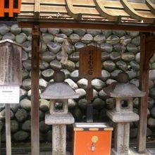 伏見稲荷大社の千本鳥居を通り抜けた先、奥社奉拝所と呼ばれる場所の右奥にある、一対の石灯籠。