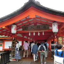フェリー乗り場から歩いて10分程で到着する、世界遺産で有名な神社です。