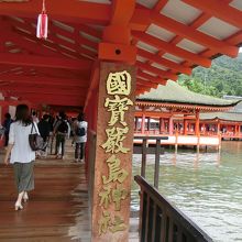 朱塗りの柱と廻廊、海に浮かぶ大鳥居は必見です。