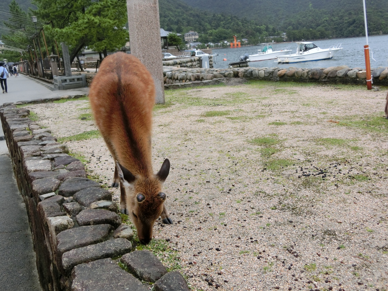 宮島桟橋を降りて、厳島神社へ向かうとすぐに多くの鹿のお出迎えを受けることになります。