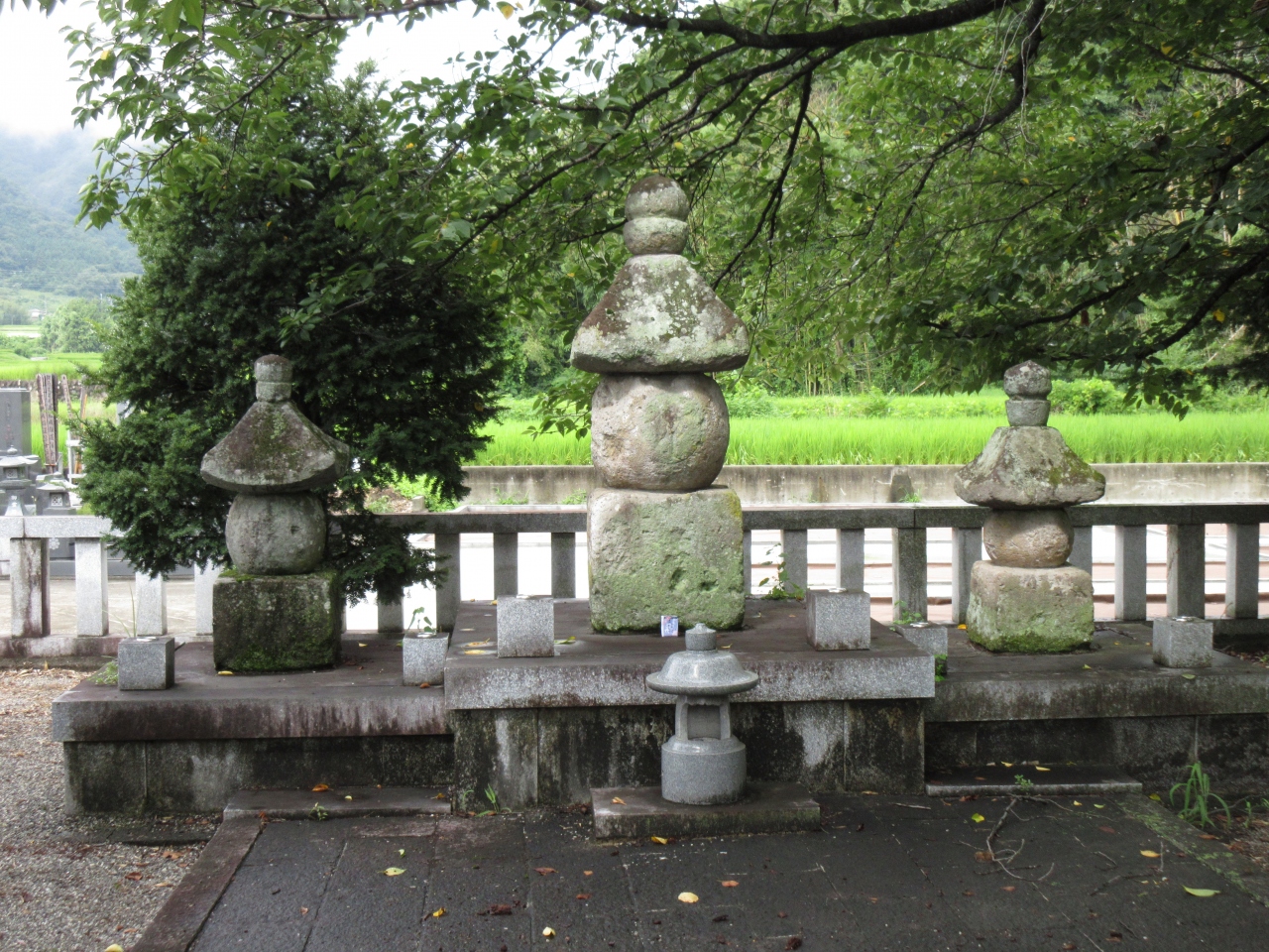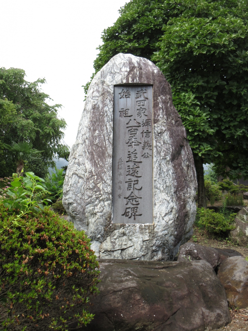 韮崎ICから10分ほど、畑の中に建つ願成寺境内にあります。甲斐源氏の惣領として、平安時代から鎌倉時代にかけて、平家追討の中心となり活躍した武将で、武田家の始祖にあたります。五輪塔の墓は石の垣根に囲まれ、両隣には夫人と13代武田信昌の息女の墓も立っています。武田信虎、信玄、勝頼ばかりがクローズアップされますが、その源を知ることができ有意義な散策になりました。