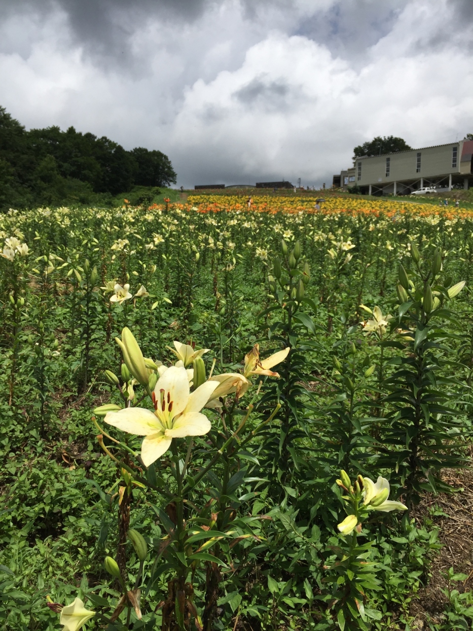 ゴンドラからは山麓ゆり園も山頂ゆり園も見渡すことができ、とてもきれいでした。山頂ゆり園はかなり見頃でした。坂道だったので足の悪い両親は少し辛そうでした。結局山麓ゆり園には入りませんでした。