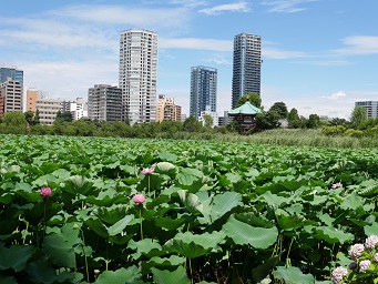 上野不忍池ではまだまだ綺麗な蓮の花を思う存分楽しむ事が出来ます。また朝の7時から8時ごろまでに行けばあちらこちらで「ポン」と言う花開く時の音を聞く事も出来ます。花の色種は少ないですが池一面に咲く姿は見事です。