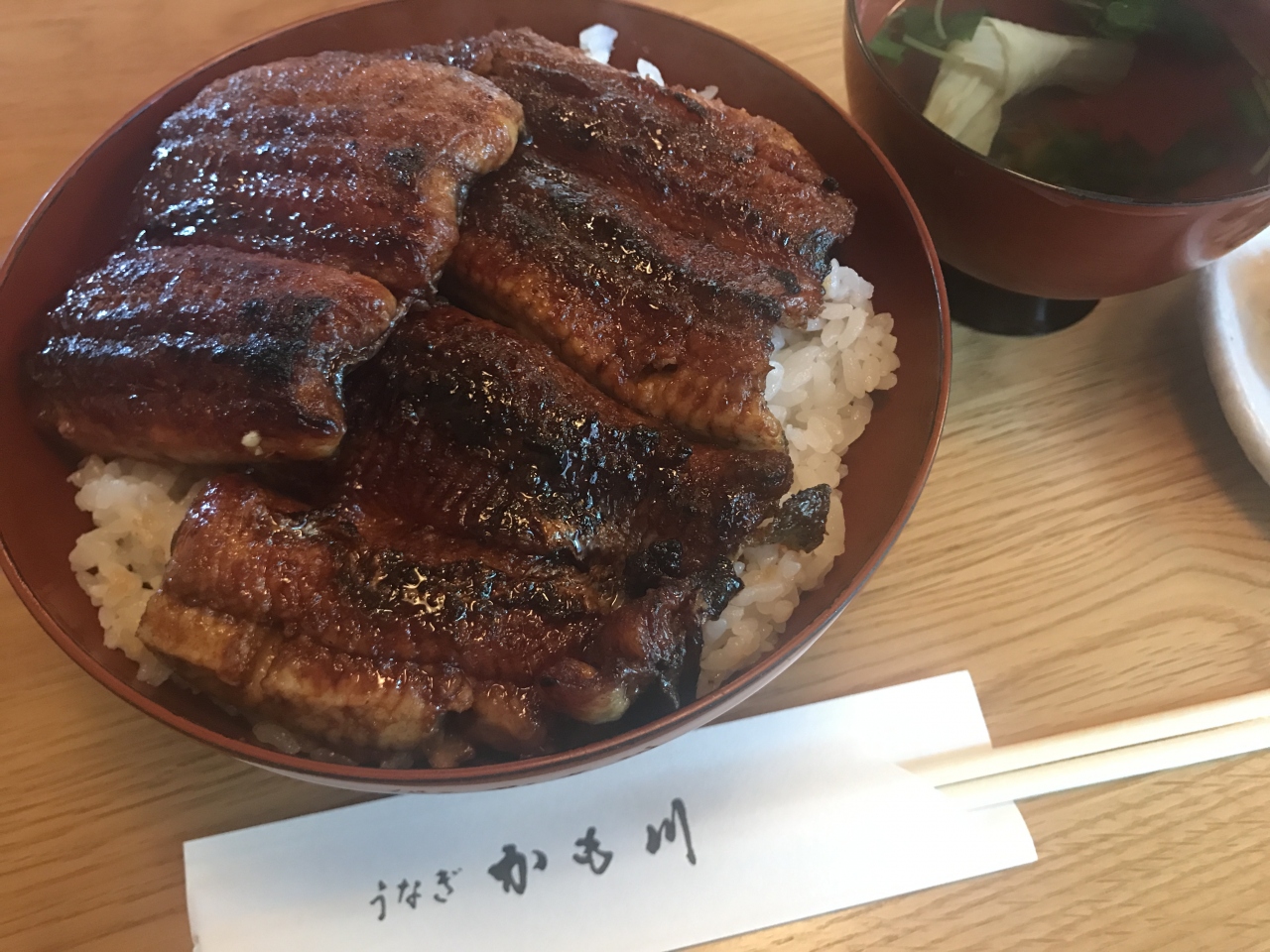 岡崎市の中では鰻のお店と言えば、必ず名前の上がるかも川。ランチに行きましたが、予約席はいっぱいで、並ぶ席も別にあるということで、うかがいましが、タイミングよく入れました。駐車場がお店の横に貼ってあります。土用の丑が近い時は売り切れもあるそうです。