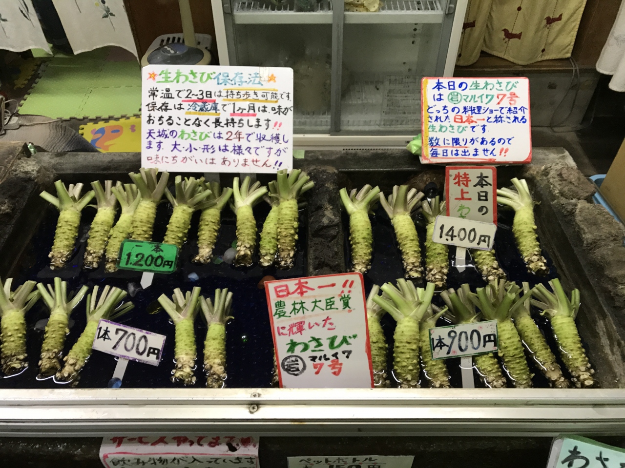 新鮮なわさびが手ごろな価格で販売されていました。
