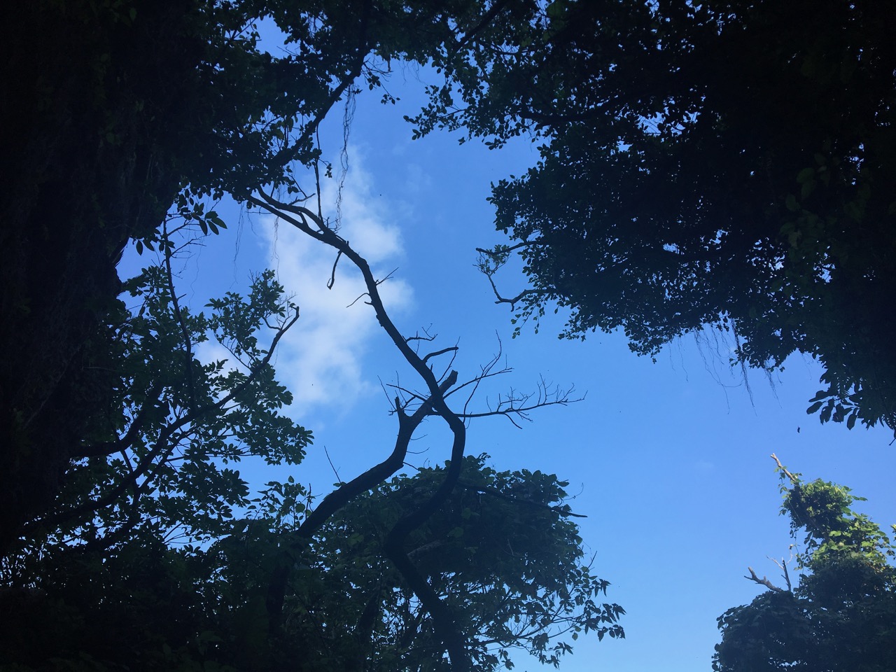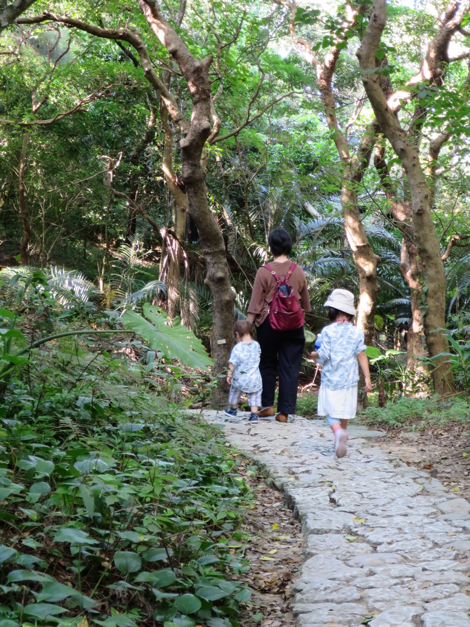 足を踏み入れると、亜熱帯の植物が生い繁るなか、聖地に向かって道が続きます。特に夕方に訪れたせいか、重厚というか厳かな空気が漂っていました。入口付近に階段と少し急な坂があるほかは、よく整備された石畳の道を進みます。