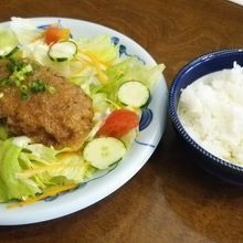 久しぶりにランチで利用しました。少しこぶりなハンバーグが野菜サラダの上に載っているランチを頼みました。まず牛テールのスープが運ばれ、ハンバーグとライスがきました。野菜サラダはかなりな量で、ハンバーグはジャポネソースに合っていました。
