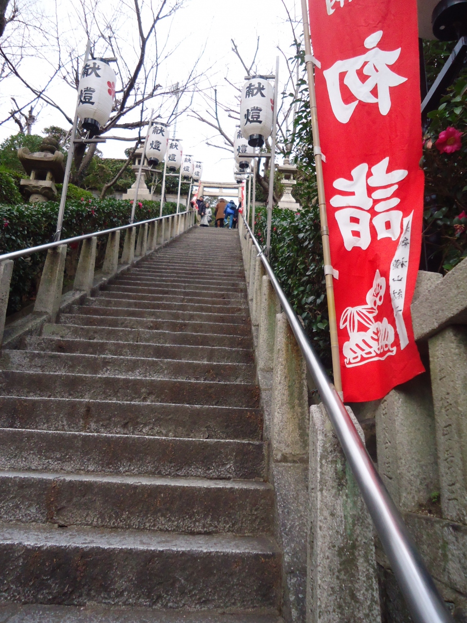 異人館に行くのに三宮の駅から坂道をずっと登ってきたところでまた石段を登らなければなりません。結構急です。登った分見晴らしもよいので頑張って登ってください。異人館がたくさんある中にこの神社があるのは意外ですし、学問の神様とのことですが、叶い鯉というものがあったりして女性に人気のスポットなのかもしれないと思いました。