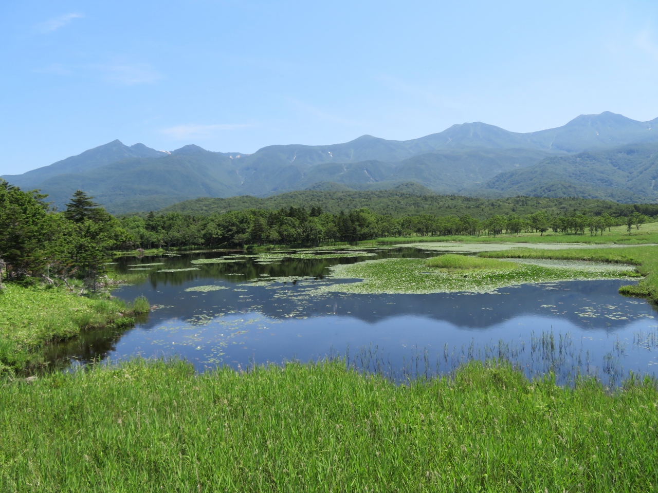 20分ほど木道を歩いてたどり着きました。初めて見た時には、えっ、これが湖? という感じでちょっと拍子抜けしてしまうほど…摩周湖や阿寒湖等の北海道の著名な湖に比べれば、本当に小さかったからです。ところが、写真に撮ってみると、スマホの写真でも水面に知床連山が写って非常に綺麗でした。木道だと、ヒグマの心配もなく、とても歩きやすいですので、できれば晴れた日に見に行ってみてください。