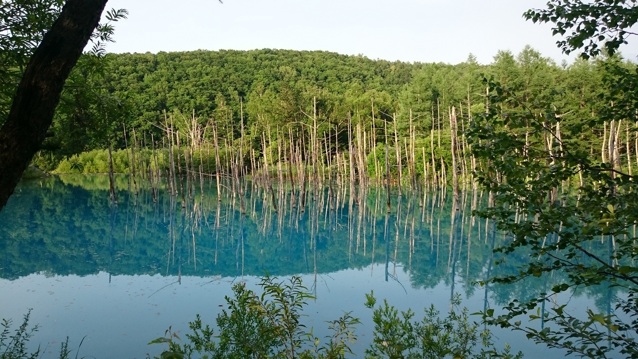 駐車場から徒歩5分くらいで青い池が見てえきます。