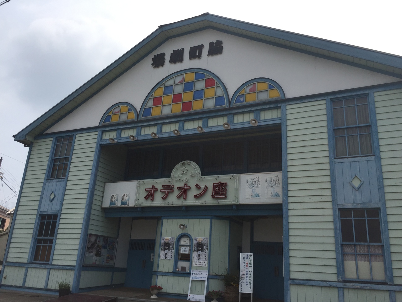 うだつの町並みのある地区から少し外れた川を渡った場所に脇町劇場があります。オデオン座と看板があるので、映画館かと思いましたが、芝居の出来る舞台がありました。入場料を払えば、公演中でなくとも見学できます。寅さん亡き後、山田洋次監督が映画を作る際に、この劇場を改修して使ったことが、内部の説明書きにかいてあります。また、地下に入ると、ひんやりとして、涼しく感じました。