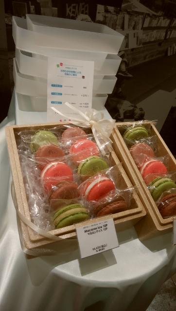 夏らしい商品、アイスも販売しています。ソフトクリーム マッチャが食べたかったのですが、480円という価格なのですが、金曜の夜いったときには完売。でもマカロンアイス はかなりの数がのこっていました。