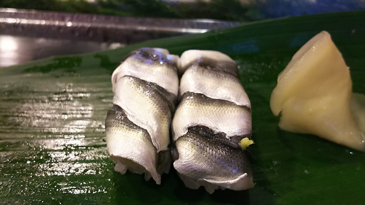 寿司ネタで小鰭(コハダ)になる前の4センチから5センチの大きさのものを新子というのをこのお寿司屋さんで教えてもらいました。時季はちょうど今、7月から8月にかけての一ヶ月間くらいの超限定ですね。